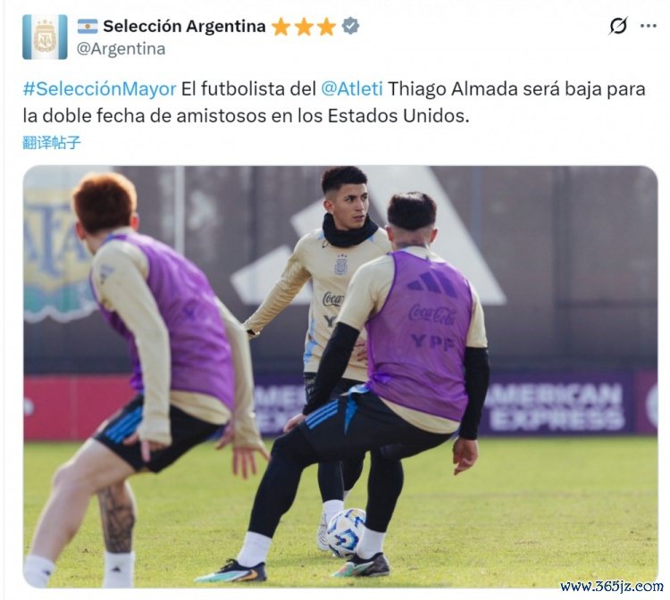 阿根廷队官方:阿尔马达将缺席10月份的两场友谊赛