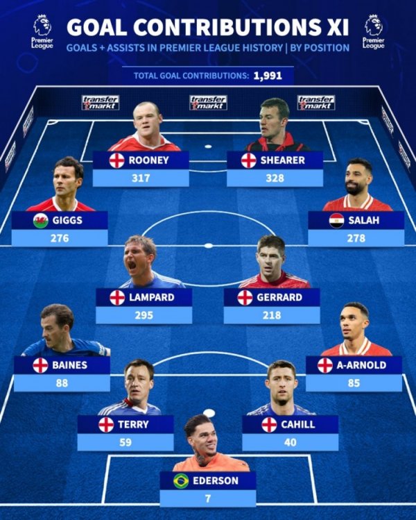10月25日讯 《转会商场》列出了各个位置的英超历史参与进球最多威望,萨拉赫、阿诺德连线右路。 德转列英超历史诸君置参与进球最多阵: 时尚:鲁尼(317球)、希勒(328球) 中场:吉格斯(276球)、兰帕德(295球)、杰拉德(218球)、萨拉赫(278球) 后卫:贝恩斯(88球)、特里(59球)、卡希尔(40球)、阿诺德(85球) 门将:埃德松(7球)......