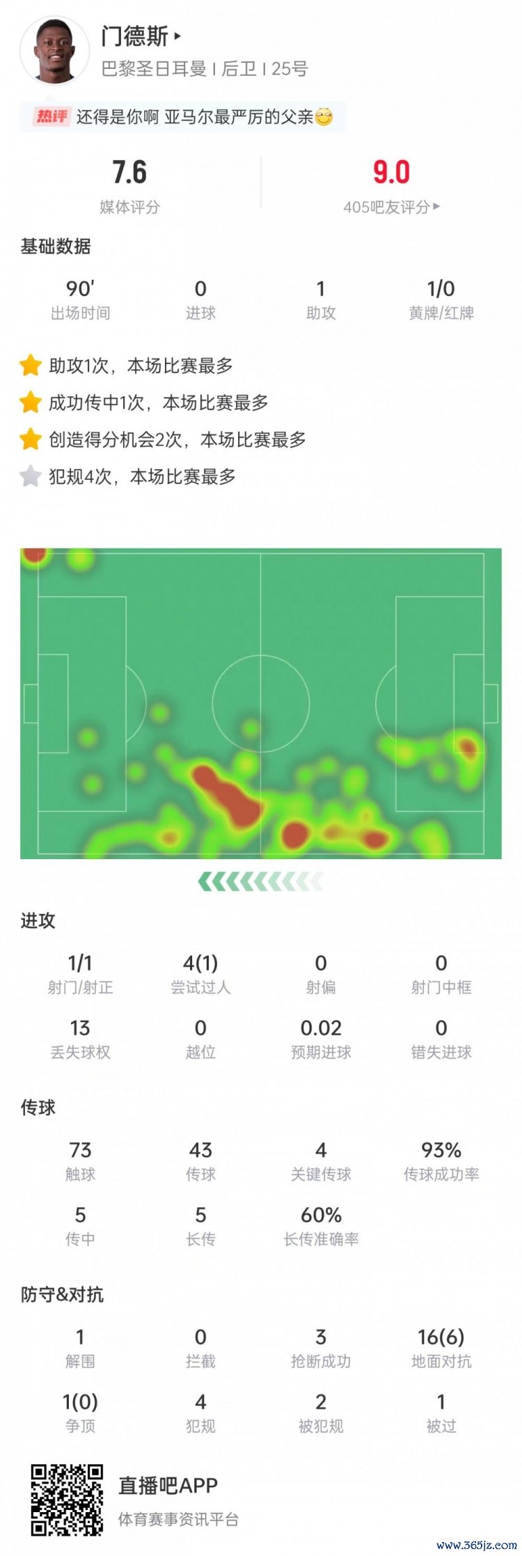 此役努诺-门德斯踢满全场送出助攻,匡助巴黎取胜,他当选本场比赛最好球员。