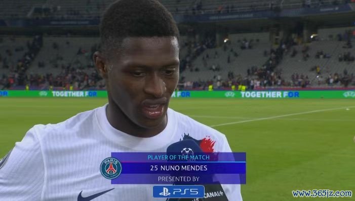 远程奔袭助攻!努诺-门德斯当选巴黎vs巴萨全场最好球员
