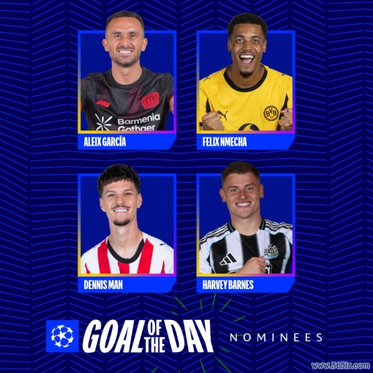 欧冠当天最好进球候选:加西亚、恩梅查、丹尼斯-曼、巴恩斯在列