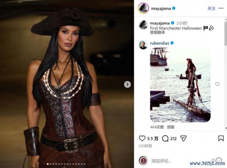 万圣节之际,鲁本-迪亚斯与女友玛雅-贾马COS加勒比海盗,玛雅-贾马社媒晒出相片,配文:“在曼彻斯特渡过的首个万圣节。”