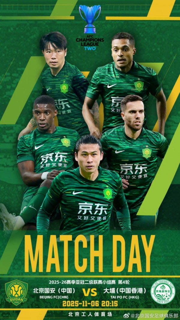 亚冠二级联赛赛事预报 ⚽ 2025-26赛季亚冠二级联赛小组赛 第4轮 🆚 北京国安(中国) VS 大埔(中国香港) ⏰️ 2025.11.06 20:15 🏟 北京工东说念主绽放场......
