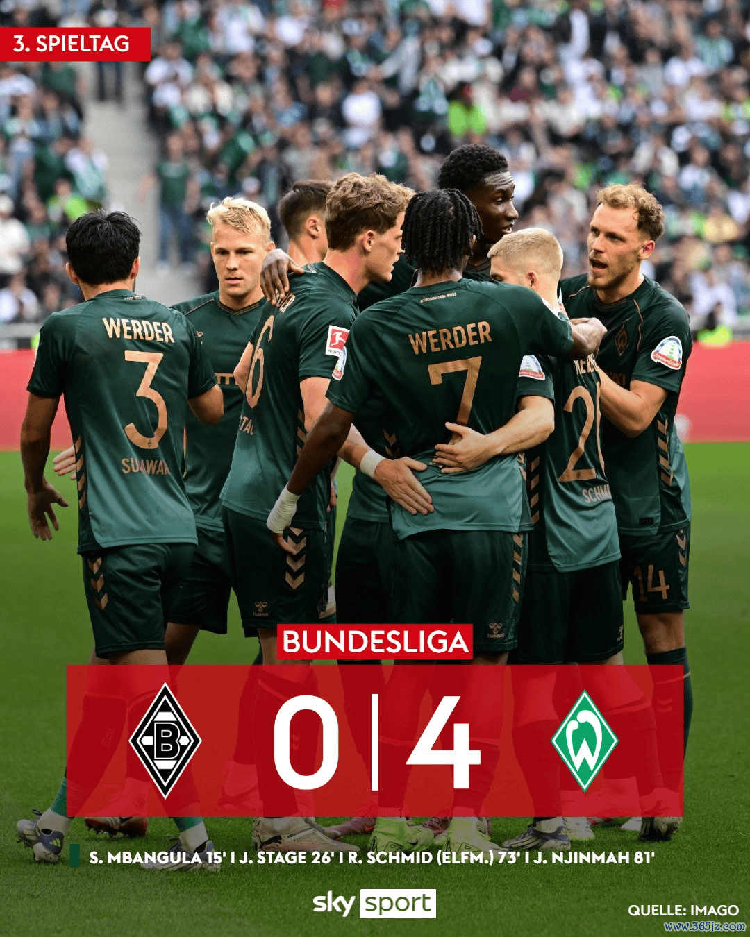 门兴主场0-4惨败不莱梅, 开局3轮0进球+1平2负未始胜绩