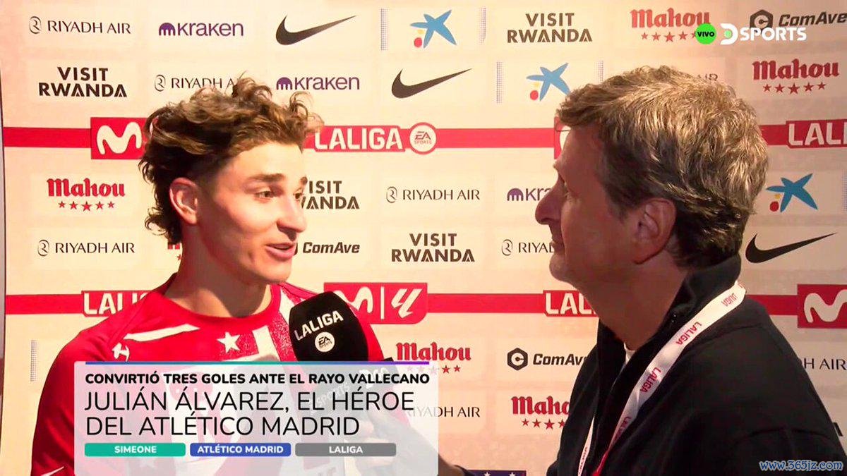 用帽子戏法匡助马竞在主场3-2险胜巴列卡诺的阿根廷先锋阿尔瓦雷斯,在赛后的采访中否定