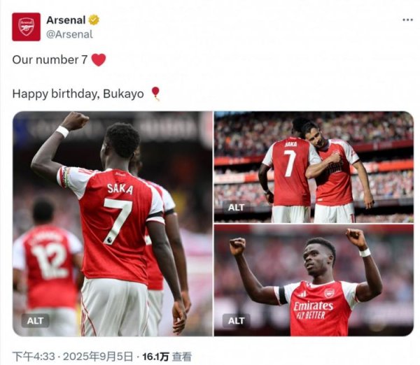 直播吧9月5日讯 今天是萨卡的24岁生辰,阿森纳为他奉上祝贺。 阿森纳官方社媒晒出萨卡的相片,配文:“咱们的7号,生辰惬心,布卡约(萨卡)!” 萨卡行状生计于今为阿森纳一线队出战265场比赛,打进71球,助攻71次,匡助球队得回1次足总杯冠军、2次社区盾杯冠军。......