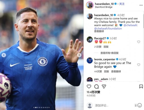 10月15日讯 切尔西名宿阿扎尔日前重返斯坦福桥投入了一场传闻赛,在厉害媒体上,晒出了我方在斯坦福桥的像片并抒发了我方的谢意之情。 阿扎尔写谈:回家并见到切尔西宇宙庭的成员老是很隆盛,感谢你们的猛烈迎接!......