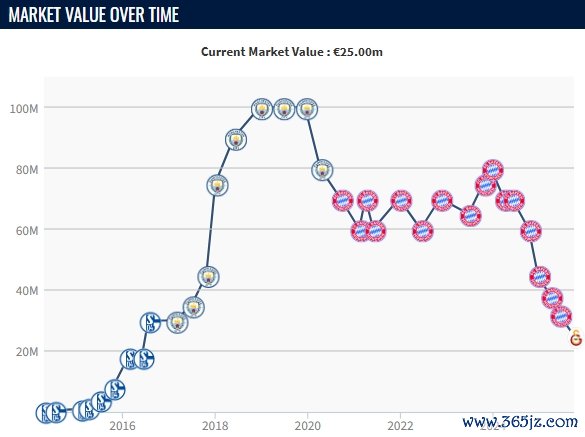 10月01日讯 德转本日更新了土超球员身价,其中今夏开脱身从拜仁加盟加拉塔萨雷的萨内,身价从3200万欧跌至2500万欧。