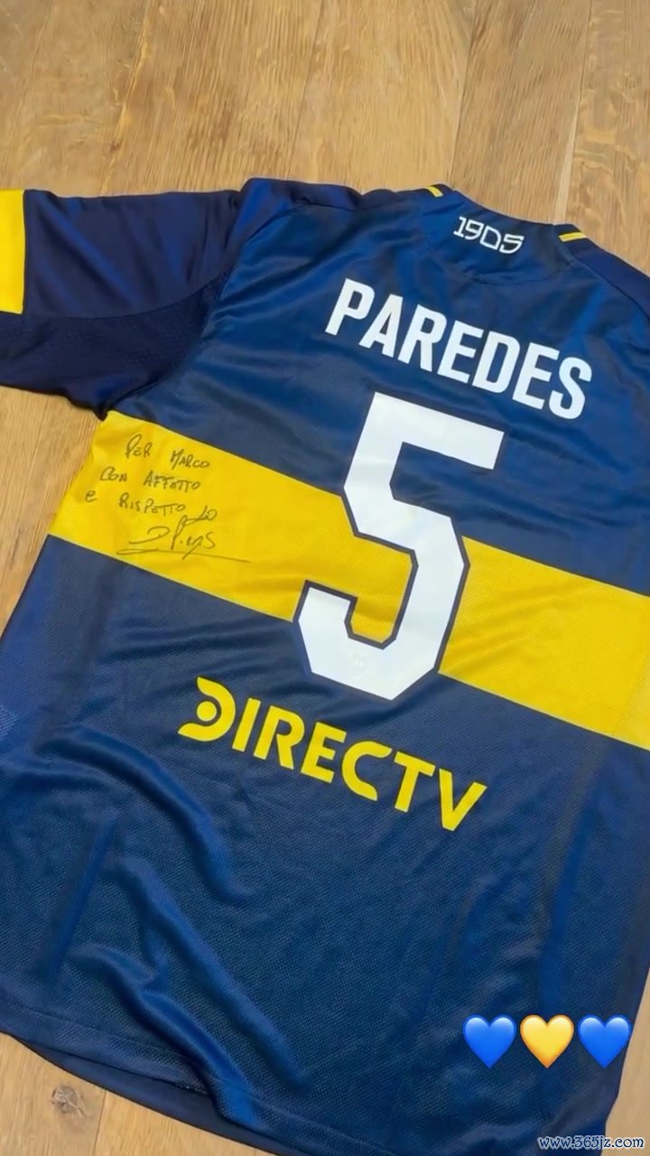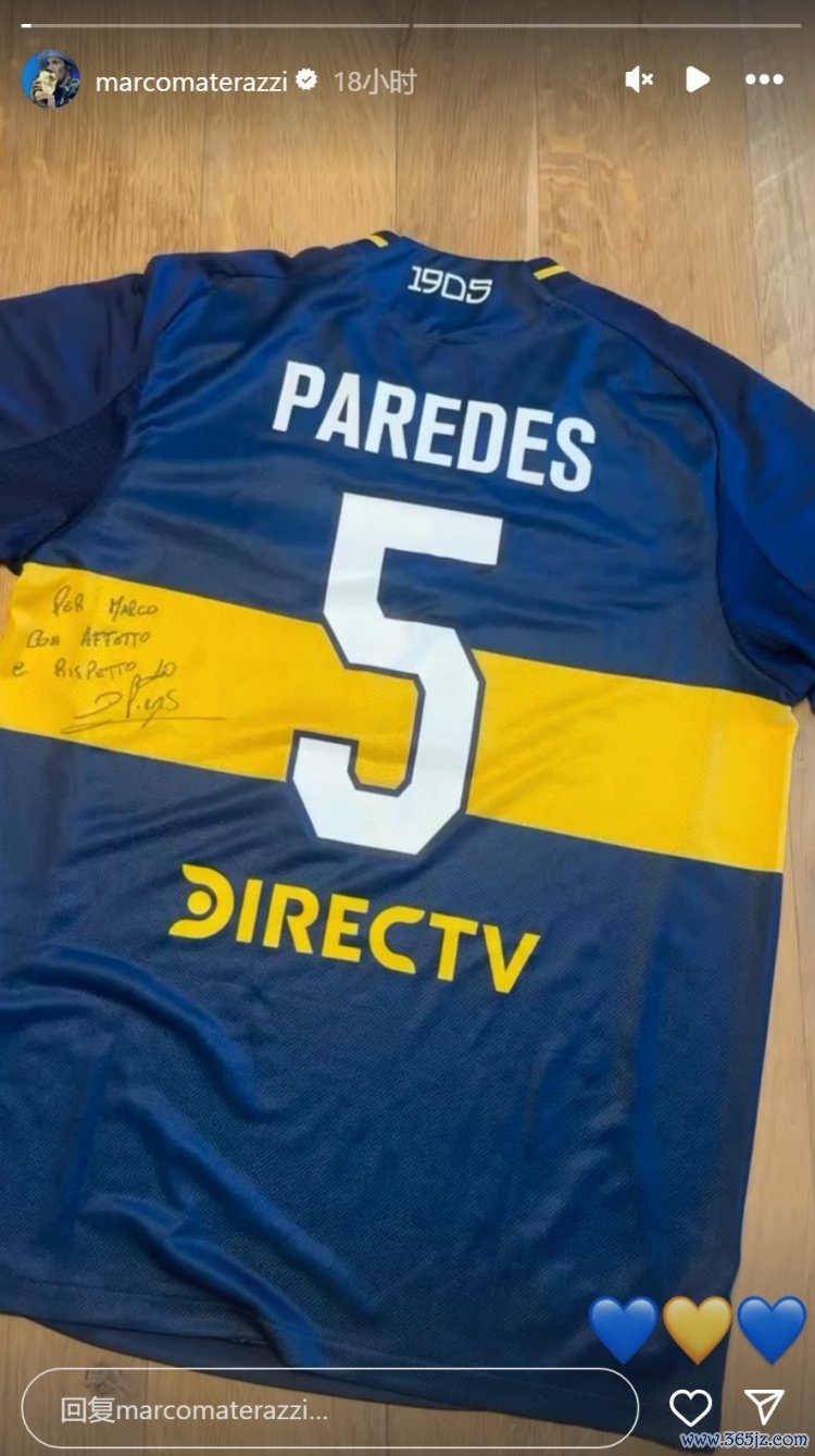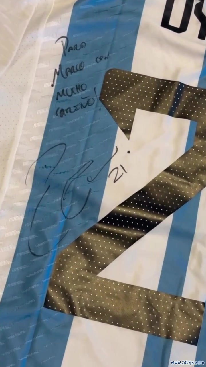 马特拉王人获赠帕雷德斯的博卡后生球衣、迪巴拉的阿根廷球衣,他在嘱咐媒体上晒出球衣的视频,对两东谈主示意感谢。