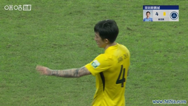 10月31日讯 中超第29轮,上海申花vs深圳新鹏城,比赛第39分钟,姜至鹏扞拒时将高天意撞出场外,同期还撩腿踢到对方裆部,被主裁判出示黄牌。姜至鹏累计四黄停赛,无缘联赛收官战。