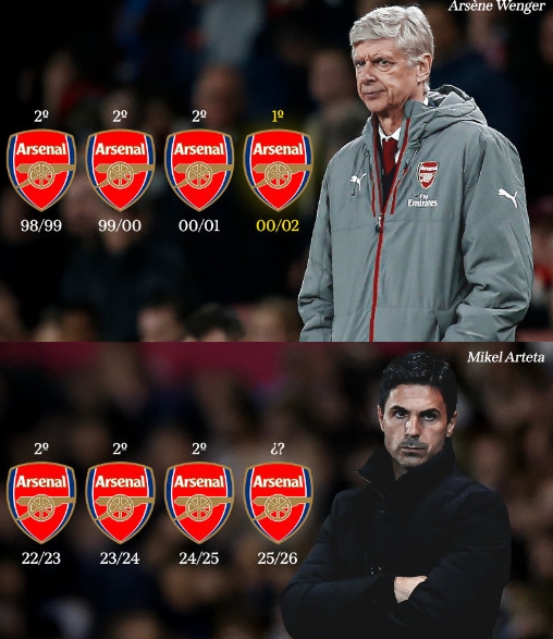 事不外4?阿尔特塔英超已3连亚,温格曾3连亚后夺冠