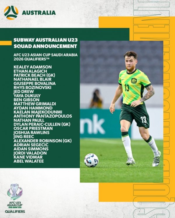 8月25日讯 澳大利亚足协公布了澳大利亚U23国度队的24东说念主大名单,他们将与中国、北马里亚纳群岛、东帝汶在西安进入U23亚洲杯预选赛D组比赛,最终的23东说念主名单将于9月1日笃定。 澳大利亚U23国度队24东说念主名单如下: 门将:比奇(墨尔本城)、卡伦(中央海岸水手)、亚历山大-罗宾逊(麦克阿瑟) 后卫:亚当森(女王公园巡游者/英格兰)、博瓦利纳(温哥华白浪/加拿大)、潘塔佐普洛斯(西悉尼流浪者)、内森-保罗(中央海岸水手)、凯恩-维德马尔(目田身)、马耶科杜米(珀......