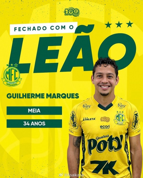 巴甲联赛球队米拉索尔(Mirassol-SP)官方告示签下了此前在长春亚泰遵守的巴西球员吉列尔梅(Guilherme Costa Marques)。现年34岁的吉列尔梅曾两次来华,分裂遵守于广州城、长春亚泰。2024赛季在亚泰遵守技艺际遇十字韧带重伤,因而淡出一线队名单。他于本年4月伤愈复出,但未能不竭留在亚泰遵守。夏转技艺临了时候曾试图加盟另一支中超球队,但最终未能成行。......
