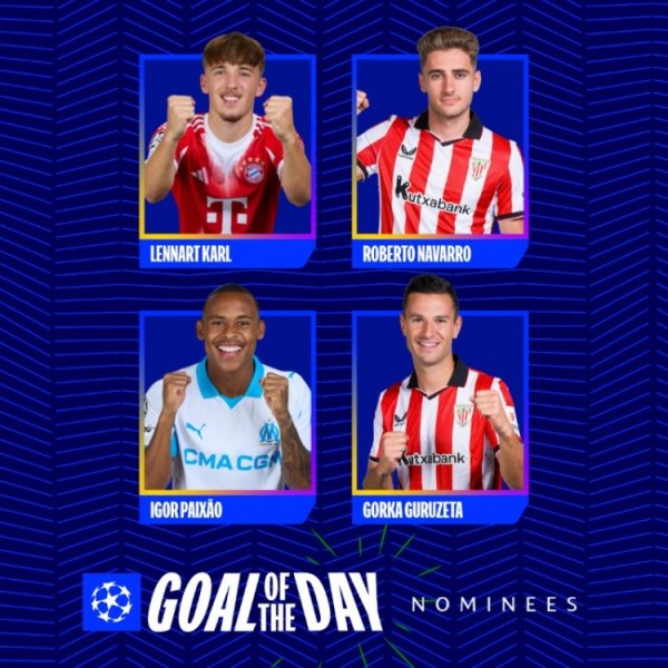 10月23日讯 当天多场欧冠联赛第三轮比赛战罢,欧冠官方列出了当天最好进球候选名单。 欧冠当天最好进球候选 伦纳特-卡尔(拜仁) 罗贝托-纳瓦罗(毕尔巴鄂竞技) 派尚(马赛) 古鲁泽塔(毕尔巴鄂竞技)......