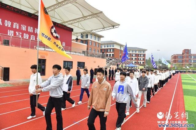 伴跟着昂扬的进行曲,各参赛班级代表队情怀壮志地步入陕煤援建绿茵场。少年们程序铿锵,眼力如炬,震天的标语在操场上空荡漾,展现出班级弘远的凝合力与必胜的信念。
