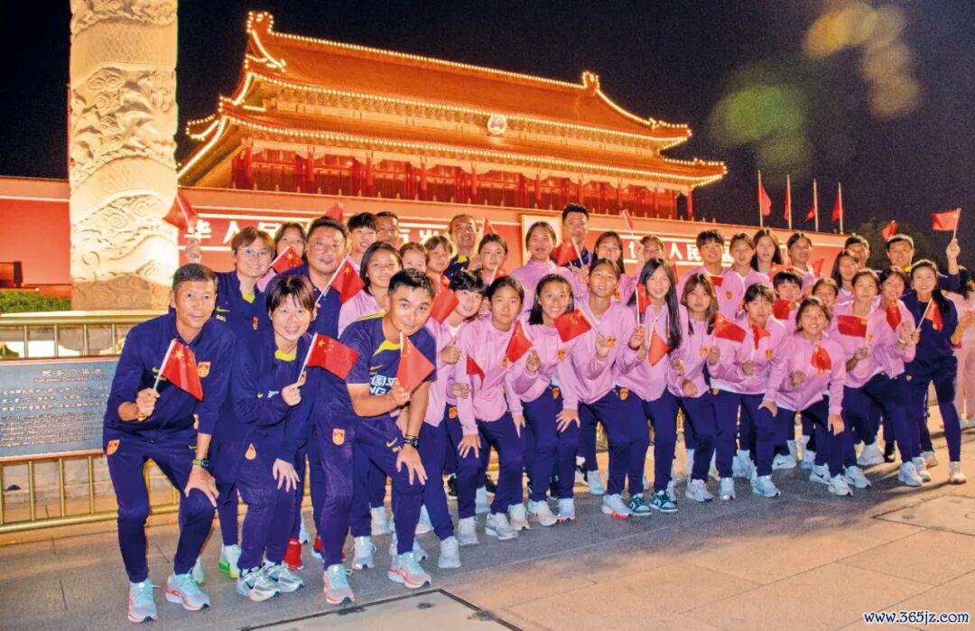 出征摩洛哥天下杯前,U17女足国度队参不雅天安门广场