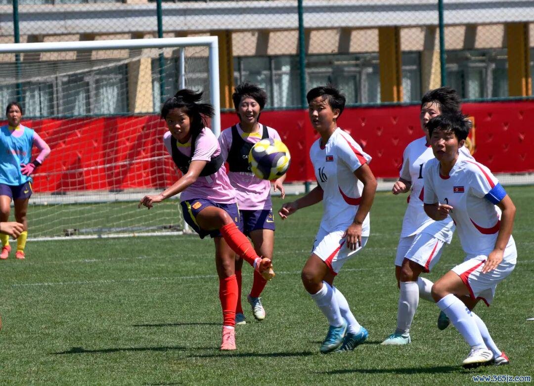 U17女足国度队周欣怡在同朝鲜队的友谊赛中
